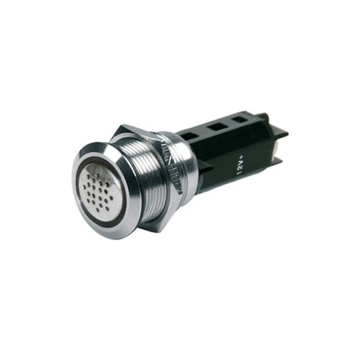 Buzzers are built to last with their stainless steel components and silver alloy contacts. The through panel mount switches are ideal for Lighting, Switches or Dashboard with colored rings that can be wired to either display power to the system or switch backlighting. The product line includes both Switches and warning shoes with LED light rings.